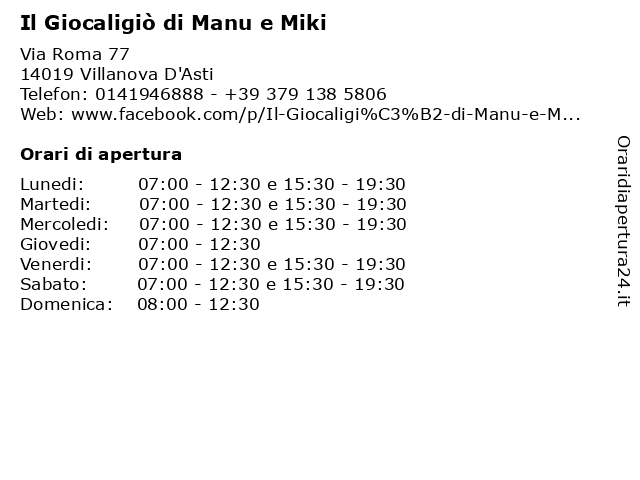 Lunedi | 07:00-12:30 e 15:30-19:30 |