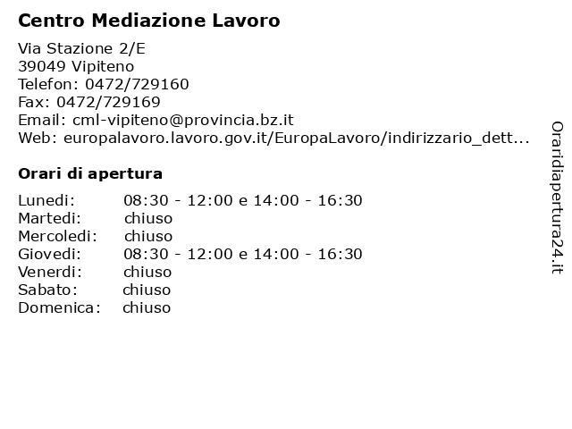 | Lunedi | 08:30-12:00 e 14:00-16:30 |