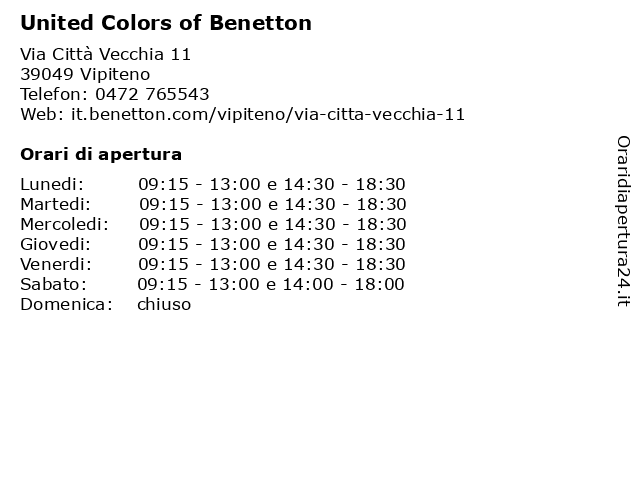 | Lunedi | 09:15-13:00 e 14:30-18:30 |