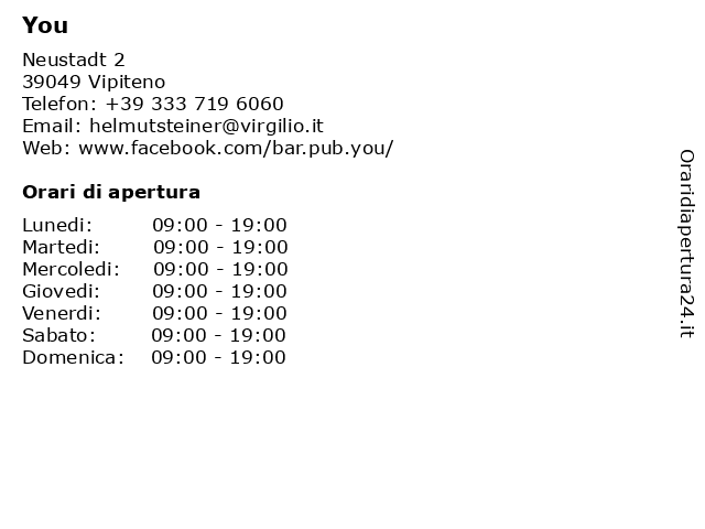 | Lunedi | 09:00-19:00 |