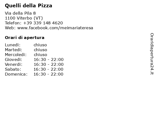 1 Quelli del borgo (distanza: 17,39 km) Vie delle Fonti s.n.c., 01030 Bassano in Teverina borgo, cucina, del, quelli, ristorante 2 ASD Polisportiva Oriolo Sezione Old Rugby Quelli del Pellicano (distanza: 28,90 km) Via Gianni Rodari 5, 01010 Oriolo Romano asd, asd., attività, del, fitness, old, oriolo, pellicano, polisportiva, quelli, rugby, sezione, sport, tempo libero 3 Quelli Del Casale Dei Girasoli (distanza: 52,27 km) Via Dell’Acquedotto Statua 11, 00055 Ladispoli (RM) belleza, casale, dei, del, dream, girasoli, hair, parrucchieri, quelli, salud, spa 4 Forno Aquilani (distanza: 0,08 km) Via C. Cattaneo 2/M, 01100 Viterbo aquilani, dolci, focacce, forno, pane, panificio, pizza, prodotti da forno 5 Hell's Kitchen (distanza: 0,11 km) Via Carlo Cattaneo 26H, 01100 Viterbo (VT) birra, cibo, dolci, hell's, kitchen, succhi 6 Dal Peschereccio Agrifish (distanza: 0,16 km) Via Carlo Cattaneo 34A, 01100 Viterbo agrifish, chef, cibo, dal, peschereccio, ristorante, servizio |