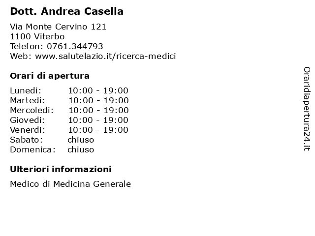 | Lunedi | 10:00-19:00 |