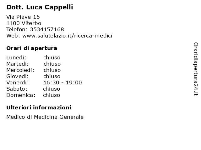 1 Dott. Luca Cappelli (distanza: 0,50 km) Via Oslavia 33-35, 01100 Viterbo (VT) ambulatori, analisi, cappelli, cura della persona, cure, dott., luca, medici, medicina, sanità, visite mediche 2 Dott. Luca Cappelli (distanza: 0,50 km) Via Oslavia 33-35, 01100 Viterbo ambulatori, cappelli, carlo, circoscrizione, dott., dottore, dr., fortini, guarigione, luca, maria, medico di base, medico di famiglia, pediatra, studi, visita 3 Rita Cappelli Srl (distanza: 0,41 km) Piazza Giuseppe Verdi 19, 01100 Viterbo cappelli, comm, dett, rita, scarpe 4 Dominique Di Rita Cappelli (distanza: 0,45 km) Corso Italia 128, 01100 Viterbo abbigliamento, cappelli, di, dominique, donna, rita, uomo, vip 6 Tomor Sas Di Cappelli Anna Maria e c. Sas (distanza: 0,92 km) Via Adolfo Marini 33, 01100 Viterbo affitto, anna, cappelli, immob, maria, proprietà, tomor |