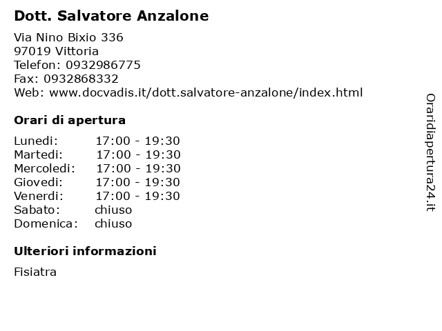 1 Anzalone Girolamo (distanza: 37,63 km) Via La Rosa Sottotenente 15, 95040 San Michele Di Ganzaria anzalone, girolamo, porta, telefoniche, vendite 2 Anzalone Adriano (distanza: 40,41 km) Via Iv Novembre 72, 95040 San Cono adriano, anzalone, coloniali, drogherie 3 Riso e Fantasia Di Anzalone Antonia Snc (distanza: 50,57 km) Viale Generale Muscara' 113/115, 94015 Piazza Armerina antonia, anzalone, catering, fantasia, riso, ristoranti 4 Avvocato Anzalone Giusy (distanza: 57,74 km) Via Regina Margherita 40, 95040 Raddusa (CT) anzalone, appuntamenti, avvocati, avvocato, difensori, giusy, leggi 5 Studio di Fisioterapia, Recupero e Riabilitazione Funzionale (distanza: 0,00 km) Via Nino Bixio 336, 97019 Vittoria cure mediche, di, dottore, fisioterapia, funzionale, medico, prescrizioni farmaci, recupero, riabilitazione, sanità, studio, visite mediche 6 Genovese Giuseppe Di Genovese Salvatore e c Sas (distanza: 0,19 km) Via Cavour 377/379 381, 97019 Vittoria abbigl, comm, dett, genere, genovese, giuseppe, salvatore |