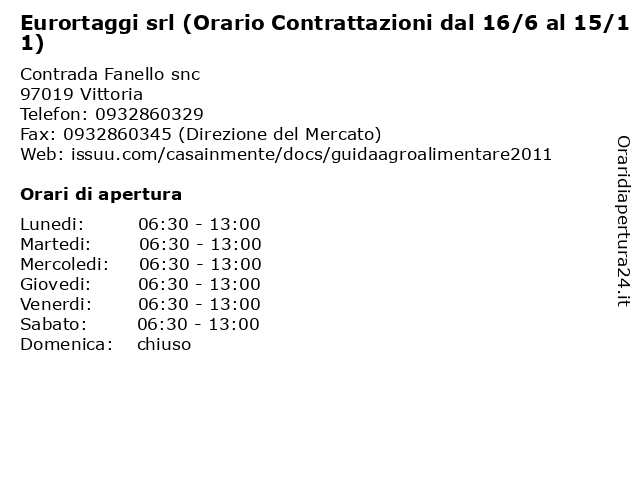 1 Agri 2000 srl (Orario Contrattazioni dal 16/6 al 15/11) (distanza: 0,00 km) Contrada Fanello snc, 97019 Vittoria (orario, 15/11), 16/6, 2000, agri, al, contrattazioni, dal, mercato ortofrutticolo, ortofrutticolo, srl, verdure 2 Agri 2000 srl (Orario Contrattazioni dal 1/4 al 15/6) (distanza: 0,00 km) Contrada Fanello snc, 97019 Vittoria (orario, 1/4, 15/6), 2000, agri, al, contrattazioni, dal, mercato ortofrutticolo, ortofrutticolo, srl, verdure 3 AGRi - GI srl (Orario Contrattazioni dal 1/4 al 15/6) (distanza: 0,00 km) Contrada Fanello snc, 97019 Vittoria (orario, 1/4, 15/6), agri, al, contrattazioni, dal, gi, mercato ortofrutticolo, ortofrutticolo, srl, verdure 4 AGRi - GI srl (Orario Contrattazioni dal 16/6 al 15/11) (distanza: 0,00 km) Contrada Fanello snc, 97019 Vittoria (orario, 15/11), 16/6, agri, al, contrattazioni, dal, gi, mercato ortofrutticolo, ortofrutticolo, srl, verdure 5 AR.CA. srl (Orario Contrattazioni dal 1/4 al 15/6) (distanza: 0,00 km) Contrada Fanello snc, 97019 Vittoria (orario, 1/4, 15/6), al, ar.ca., contrattazioni, dal, mercato ortofrutticolo, ortofrutticolo, srl, verdure 6 AR.CA. srl (Orario Contrattazioni 16/6 al 15/11) (distanza: 0,00 km) Contrada Fanello snc, 97019 Vittoria (orario, 15/11), 16/6, al, ar.ca., contrattazioni, mercato ortofrutticolo, ortofrutticolo, srl, verdure |