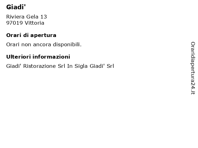 1 Giadi' Ristorazione Srl (distanza: 11,41 km) Via Carlo Alberto 257, 97019 Vittoria catering, giadi, ristoranti, ristorazione 2 La Sorgente Prodotti Ortofrutticoli Srl In Sigla La Sorgente Srl (distanza: 9,13 km) Via Mercato Ortofrutticolo 14, 97019 Vittoria ag, brokeraggio, internaz, mediaz, ortofrutticoli, prodotti, sigla, sorgente 3 Terre Di Giurfo Srl In Sigla t.g. Srl (distanza: 11,06 km) Via Palestro 536, 97019 Vittoria bottiglierie, giurfo, sigla, superalcolici, terre, vini 4 Gulino Giuseppe & Scrofani Patrizia Snc In Sigla Gulino & Scr Ofani Snc (distanza: 21,77 km) Contrada Monachella Sn, 97100 Ragusa benzina, distributori, giuseppe, gulino, ofani, patrizia, scr, scrofani, sigla 5 Batterie Ricambi Meccanici Ed Elettrici Di Marinelli Giuseppe e c Snc In Sigla b.r.m. Di Marineli Giuseppe e c. Snc (distanza: 24,22 km) Zona Industriale Iii Fase, 97100 Ragusa accessori, auto, batterie, elettrici, giuseppe, marineli, marinelli, meccanici, ricambi, rivend, sigla 6 Batterie Ricambi Meccanici Ed Elettrici Di Marinelli Giuseppe e c Snc In Sigla b.r.m. Di Marineli Giuseppe e c. Snc (distanza: 25,30 km) Via Degli Aceri s. n., 97100 Ragusa accessori, auto, batterie, elettrici, giuseppe, marineli, marinelli, meccanici, ricambi, rivend, sigla |