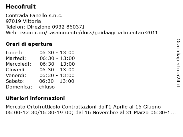1 Hecofruit di Incardona Andrea sas (Orario Contrattazioni dal 16/6 al 15/11) (distanza: 2,66 km) Contrada Fanello snc, 97019 Vittoria (orario, 15/11), 16/6, al, andrea, contrattazioni, dal, di, hecofruit, incardona, mercato ortofrutticolo, ortofrutticolo, sas, verdure 2 Hecofruit di Incardona Andrea sas (Orario Contrattazioni dal 1/4 al 15/6) (distanza: 2,66 km) Contrada Fanello snc, 97019 Vittoria (orario, 1/4, 15/6), al, andrea, contrattazioni, dal, di, hecofruit, incardona, mercato ortofrutticolo, ortofrutticolo, sas, verdure 3 Hecofruit di Incardona Andrea sas (Orario Contrattazioni dal 16/11 al 31/3) (distanza: 2,66 km) Contrada Fanello snc, 97019 Vittoria (orario, 16/11, 31/3), al, andrea, contrattazioni, dal, di, hecofruit, incardona, mercato ortofrutticolo, ortofrutticolo, sas, verdure 4 Agri 2000 Srl (distanza: 0,00 km) Contrada Fanello s.n.c., 97019 Vittoria 2000, agri, frutta, ortofrutta, prodotti freschi, srl, verdura 5 Agri Gi Srl (distanza: 0,00 km) Contrada Fanello s.n.c., 97019 Vittoria agri, frutta, gi, ortofrutta, prodotti freschi, srl, verdura 6 Agroverde Srl (distanza: 0,00 km) Contrada Fanello s.n.c., 97019 Vittoria agroverde, frutta, ortofrutta, prodotti freschi, srl, verdura |