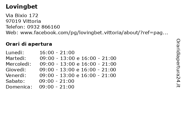 | Venerdi | 09:00-13:00 e 16:00-21:00 |