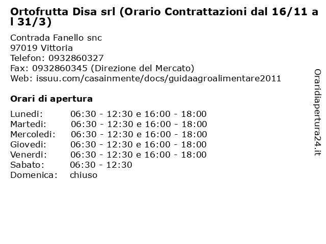Tag di ricerca per Ortofrutta Disa srl (Orario Contrattazioni dal 16/11 al 31/3):srl, ortofrutta, al, dal, (orario, verdure, ortofrutticolo, contrattazioni, 31/3), 16/11, mercato ortofrutticolo, disa |