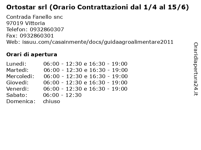1 Agri 2000 srl (Orario Contrattazioni dal 16/6 al 15/11) (distanza: 0,00 km) Contrada Fanello snc, 97019 Vittoria (orario, 15/11), 16/6, 2000, agri, al, contrattazioni, dal, mercato ortofrutticolo, ortofrutticolo, srl, verdure 2 Agri 2000 srl (Orario Contrattazioni dal 1/4 al 15/6) (distanza: 0,00 km) Contrada Fanello snc, 97019 Vittoria (orario, 1/4, 15/6), 2000, agri, al, contrattazioni, dal, mercato ortofrutticolo, ortofrutticolo, srl, verdure 3 AGRi - GI srl (Orario Contrattazioni dal 1/4 al 15/6) (distanza: 0,00 km) Contrada Fanello snc, 97019 Vittoria (orario, 1/4, 15/6), agri, al, contrattazioni, dal, gi, mercato ortofrutticolo, ortofrutticolo, srl, verdure 4 AGRi - GI srl (Orario Contrattazioni dal 16/6 al 15/11) (distanza: 0,00 km) Contrada Fanello snc, 97019 Vittoria (orario, 15/11), 16/6, agri, al, contrattazioni, dal, gi, mercato ortofrutticolo, ortofrutticolo, srl, verdure 5 AR.CA. srl (Orario Contrattazioni dal 1/4 al 15/6) (distanza: 0,00 km) Contrada Fanello snc, 97019 Vittoria (orario, 1/4, 15/6), al, ar.ca., contrattazioni, dal, mercato ortofrutticolo, ortofrutticolo, srl, verdure 6 AR.CA. srl (Orario Contrattazioni 16/6 al 15/11) (distanza: 0,00 km) Contrada Fanello snc, 97019 Vittoria (orario, 15/11), 16/6, al, ar.ca., contrattazioni, mercato ortofrutticolo, ortofrutticolo, srl, verdure |