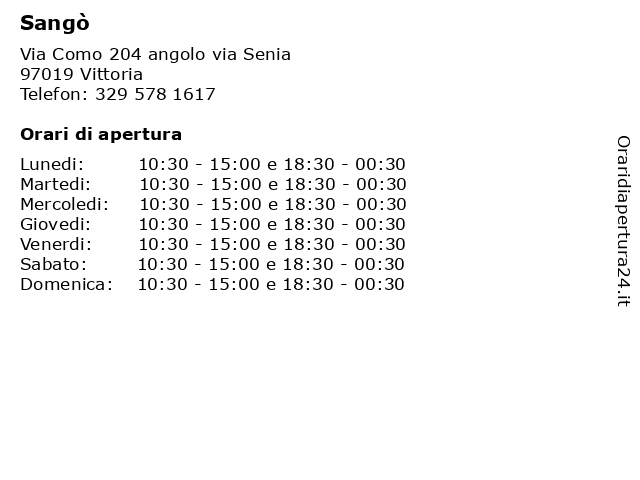 | Sabato | 10:30-15:00 e 18:30-00:30 |