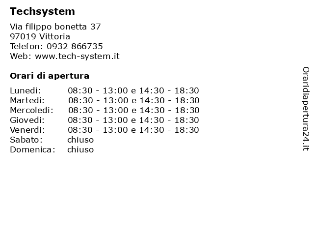 Lunedi | 08:30-13:00 e 14:30-18:30 |