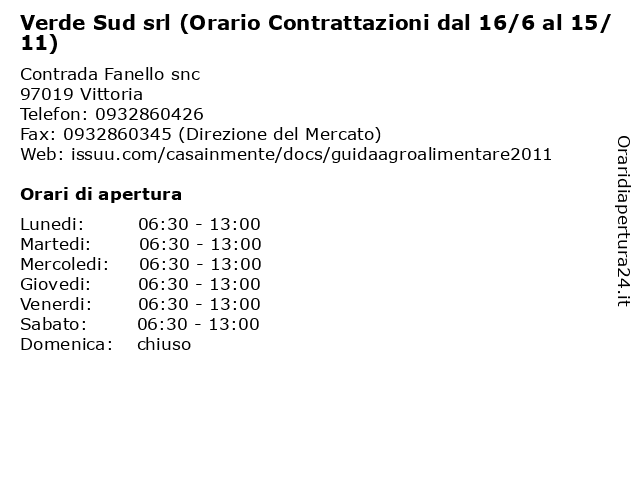 1 Agri 2000 srl (Orario Contrattazioni dal 16/6 al 15/11) (distanza: 0,00 km) Contrada Fanello snc, 97019 Vittoria (orario, 15/11), 16/6, 2000, agri, al, contrattazioni, dal, mercato ortofrutticolo, ortofrutticolo, srl, verdure 2 Agri 2000 srl (Orario Contrattazioni dal 1/4 al 15/6) (distanza: 0,00 km) Contrada Fanello snc, 97019 Vittoria (orario, 1/4, 15/6), 2000, agri, al, contrattazioni, dal, mercato ortofrutticolo, ortofrutticolo, srl, verdure 3 AGRi - GI srl (Orario Contrattazioni dal 1/4 al 15/6) (distanza: 0,00 km) Contrada Fanello snc, 97019 Vittoria (orario, 1/4, 15/6), agri, al, contrattazioni, dal, gi, mercato ortofrutticolo, ortofrutticolo, srl, verdure 4 AGRi - GI srl (Orario Contrattazioni dal 16/6 al 15/11) (distanza: 0,00 km) Contrada Fanello snc, 97019 Vittoria (orario, 15/11), 16/6, agri, al, contrattazioni, dal, gi, mercato ortofrutticolo, ortofrutticolo, srl, verdure 5 AR.CA. srl (Orario Contrattazioni dal 1/4 al 15/6) (distanza: 0,00 km) Contrada Fanello snc, 97019 Vittoria (orario, 1/4, 15/6), al, ar.ca., contrattazioni, dal, mercato ortofrutticolo, ortofrutticolo, srl, verdure 6 AR.CA. srl (Orario Contrattazioni 16/6 al 15/11) (distanza: 0,00 km) Contrada Fanello snc, 97019 Vittoria (orario, 15/11), 16/6, al, ar.ca., contrattazioni, mercato ortofrutticolo, ortofrutticolo, srl, verdure |