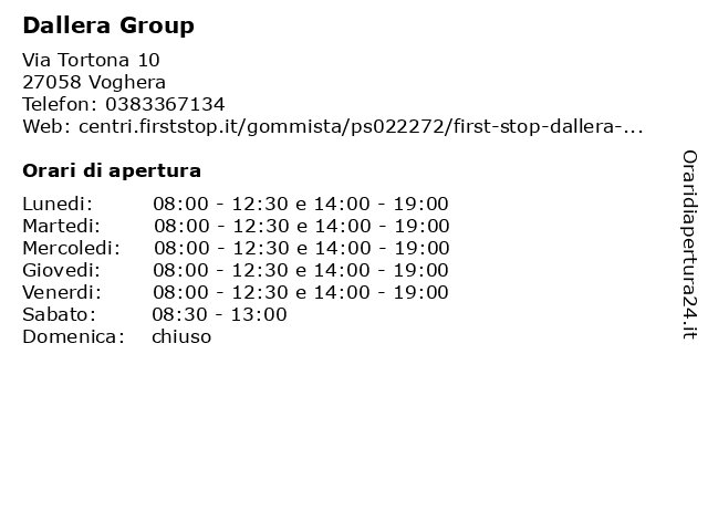 | Lunedi | 08:00-12:30 e 14:00-19:00 |