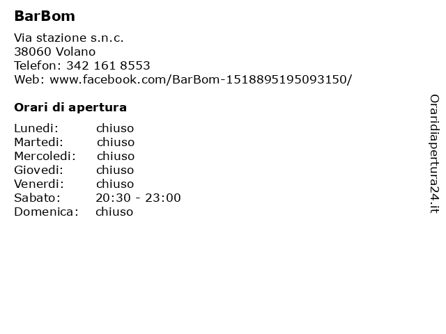 | Sabato | 20:30-23:00 |