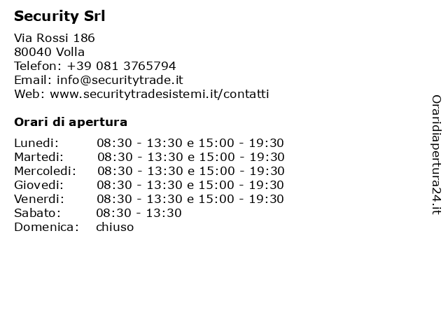 | Lunedi | 08:30-13:30 e 15:00-19:30 |