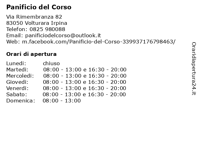| Sabato | 08:00-13:00 e 16:30-20:00 |